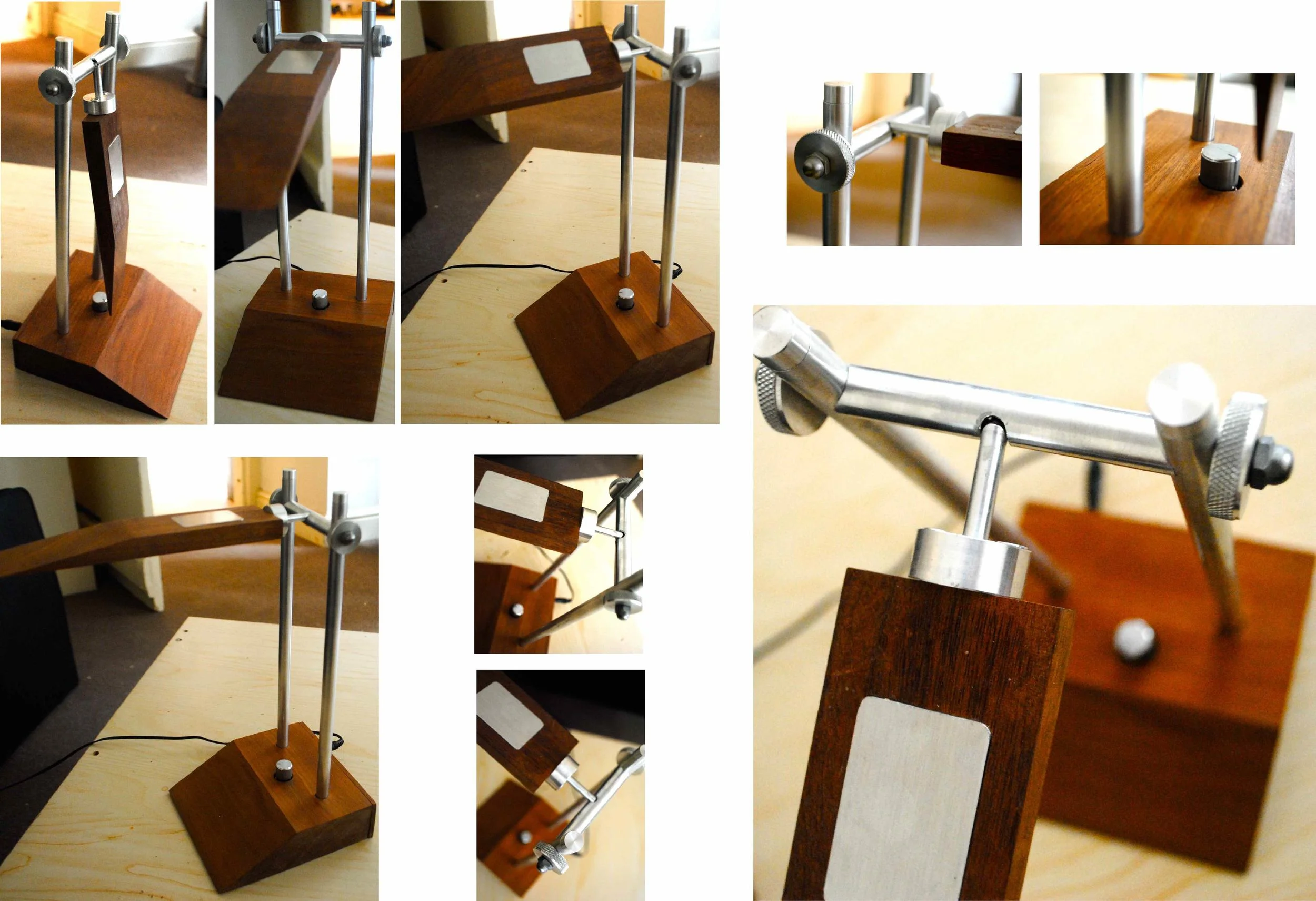 A task lamp that combines traditional hardwoods with modern industrial materials. The product utilises low-energy LED lights.