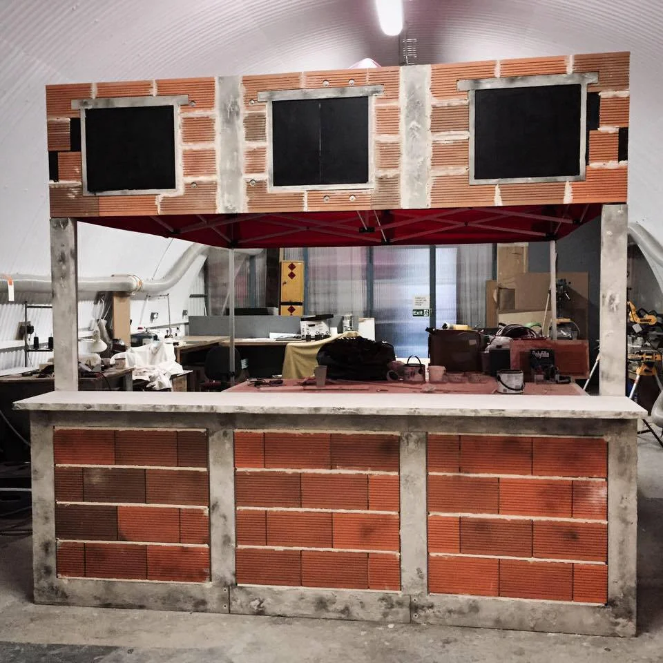 Named after the biggest slum in Venezuela, Petare brings the proper Venezuelan Street Food experience to London. The brief was to produce a mobile unit that looked like a house that had come straight from the slums of Venezuela. It wasn't very practical to buy bricks from Venezuela so each brick needed to be modelled to look just like one. The stand has been used for Field Day Festival 2016 and now has a regular pitch near the Gherkin in London organised by KERB food.