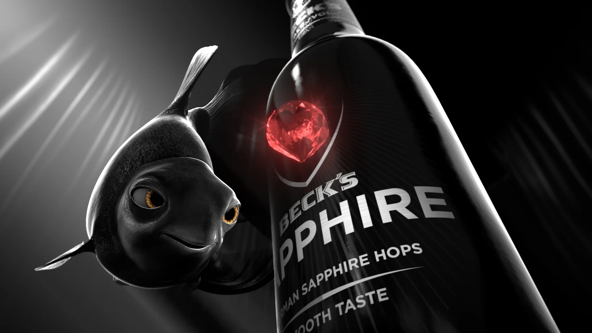 Becks Saphire was advertised at the London Superbowl in 2013. Complete Fab and Max Harvey Design produced rigs to achieve the liquid effect.